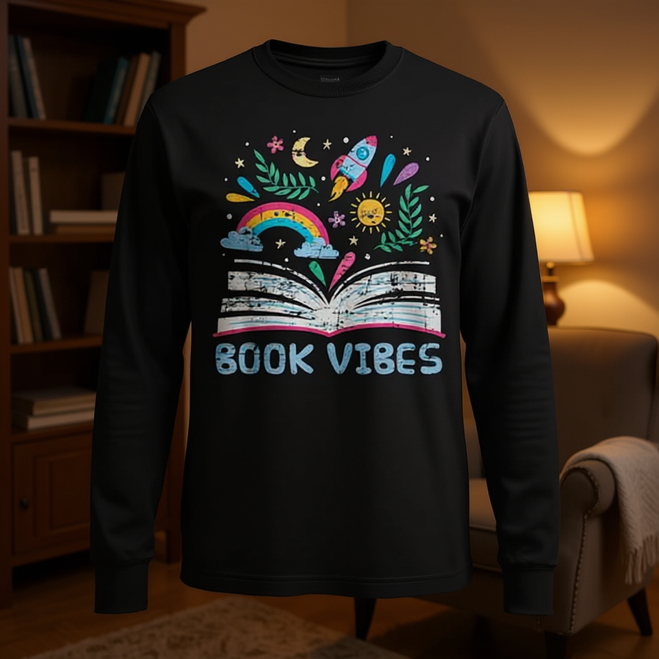 เสื้อยืดแขนยาวสำหรับอ่านหนังสือ Book Vibes Bookworm