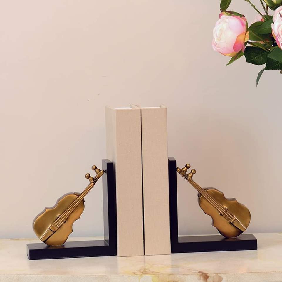 ที่กั้นหนังสือสำหรับชั้นวางของ ที่กั้นหนังสือไวโอลินทองแดงแท้ ที่วางหนังสือโลหะตกแต่ง