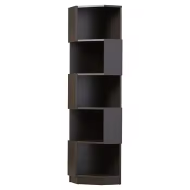 HMS 88ตู้หนังสือห้าชั้นด้วยเหล็กสีดำและน้ำตาลและตู้หนังสือไม้ห้าชั้น