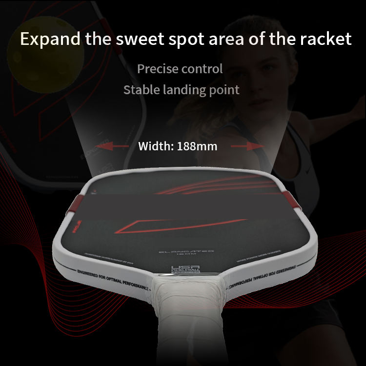 ไม้พายพิคเคิลบอลคาร์บอนไฟเบอร์ Toray T700 หนา 16 มม. พร้อมแกนโฟม EVA พื้นผิวหยาบแบบ Boom Rough Surface ช่วยดูดซับแรงกระแทกอย่างมั่นคง พร้อมพื้นที่ตีขนาดใหญ่พิเศษ