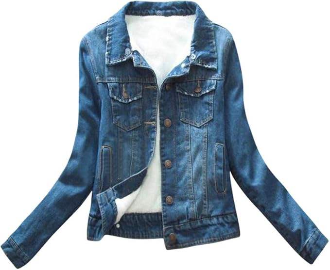 Boomletcorp แจ็คเก็ตยีนส์แขนยาวสำหรับผู้หญิง, เสื้อแจ็คเก็ตผ้าเดนิมระบายอากาศสบายมีสไตล์