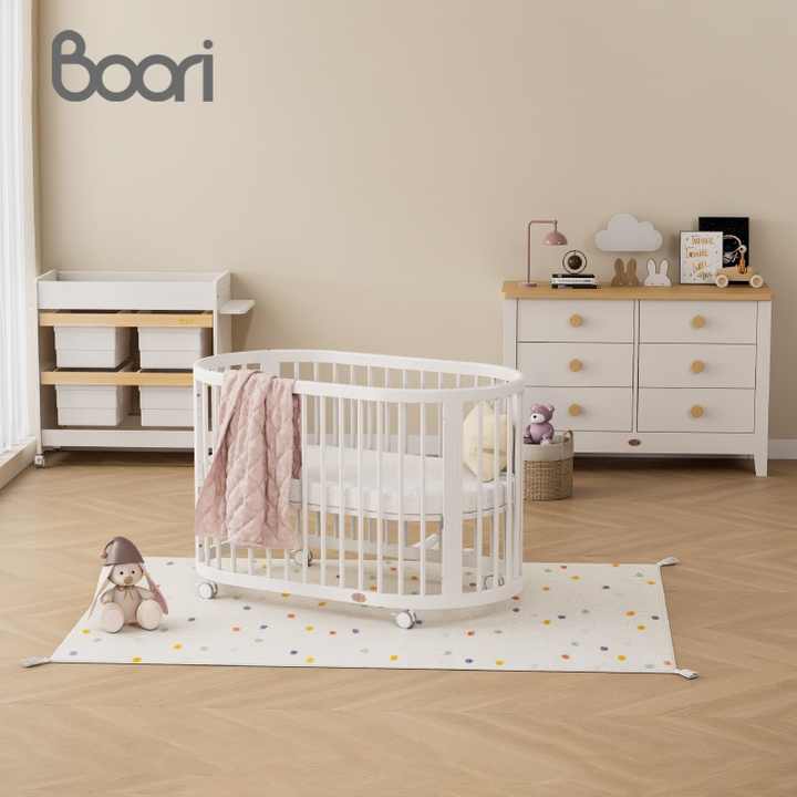 Description:Convertible 3 In 1 Wooden Oval Baby Crib