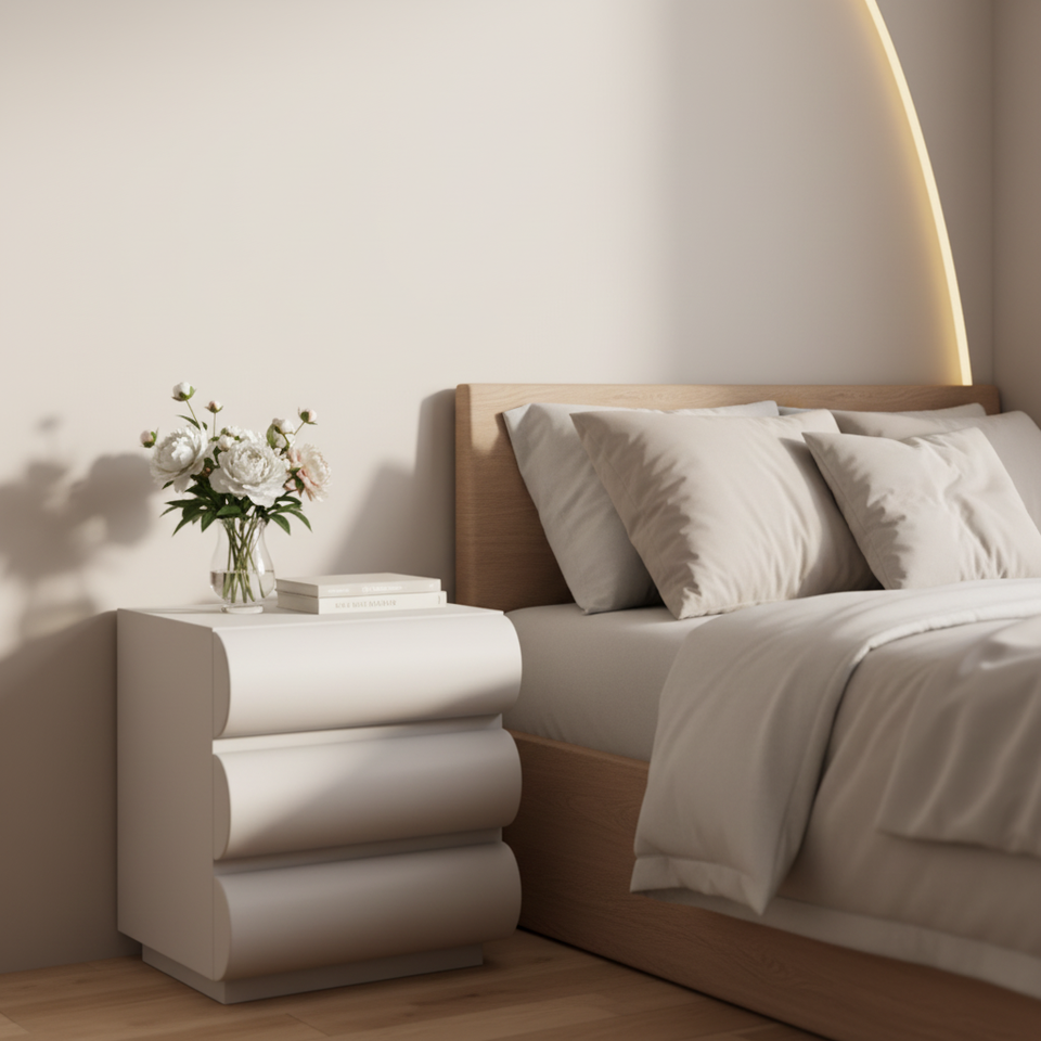 โต๊ะเครื่องแป้งไม้เนื้อแข็งเคลือบเงาพร้อมลิ้นชักเก็บของ โต๊ะเครื่องแป้งข้างเตียงแบบขยายได้ สไตล์วบิซาบิ โมเดิร์น