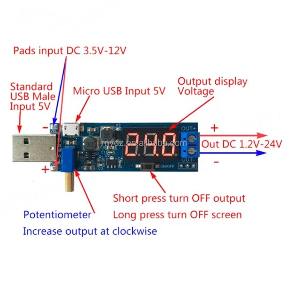 ตัวแปลงบูสต์บั๊กโมดูลแหล่งจ่ายไฟแบบ USB ขึ้น/ลง DC-DC 5V ถึง3.3V 9V 12V 24V ปรับได้ DC 1.2V-24V