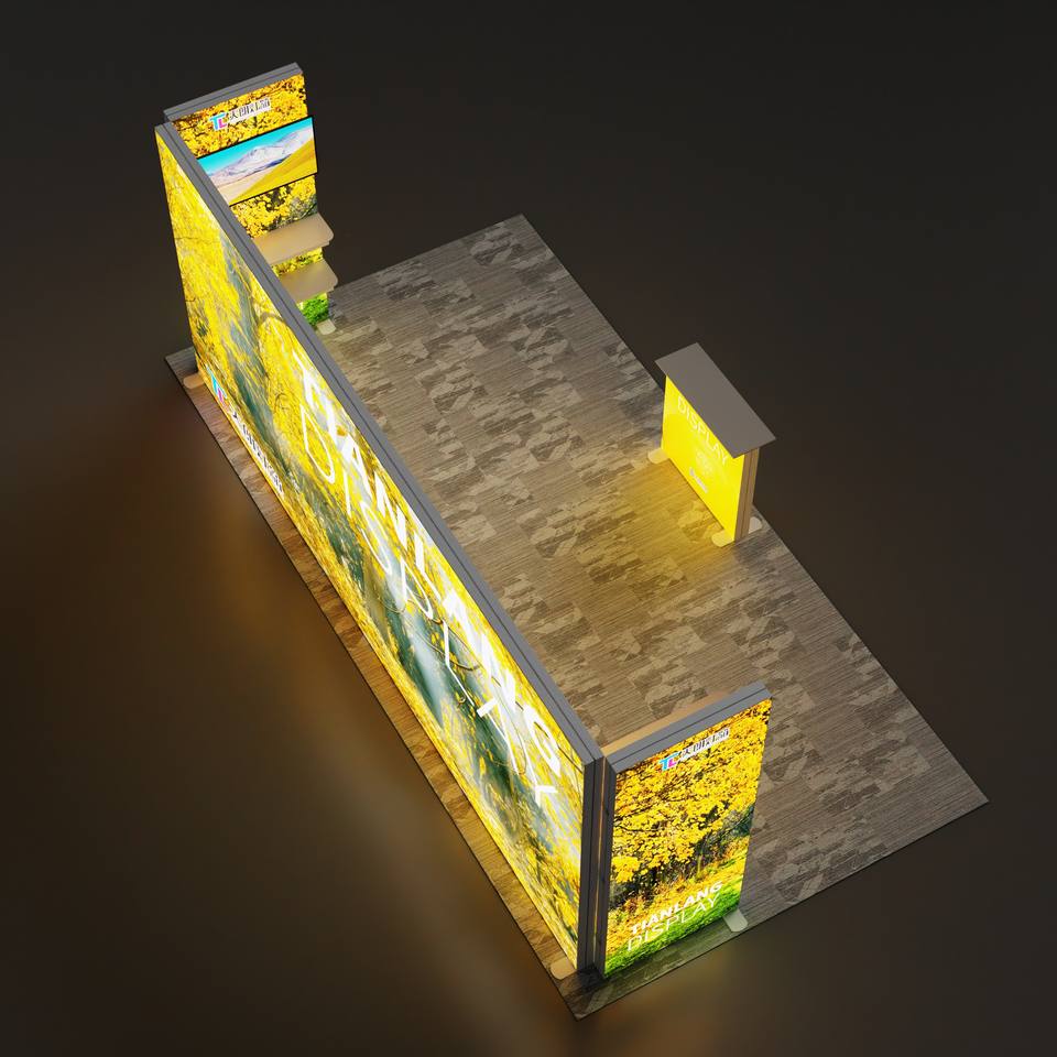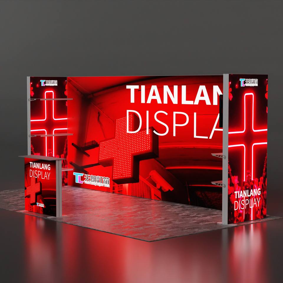 บูธแสดงสินค้า Tianlang แบรนด์ Tianlang รุ่น Tianlang-12 จอแสดงผล LED แบบโค้ง ผ้าคลุมแบบไร้กรอบ ขนาด 6x2 เมตร พร้อมกล่องเก็บแบบ Flight Case