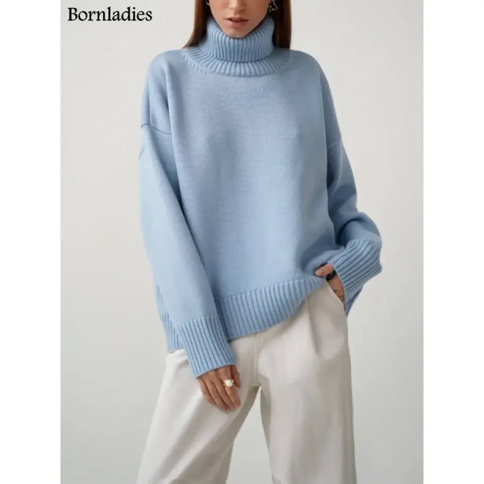 เสื้อสเวตเตอร์คอเต่าของผู้หญิงเสื้อสเวตเตอร์คอเต่าแบบสวมหัวหนาอบอุ่นทรงหลวมไซส์ใหญ่พิเศษสำหรับฤดูใบไม้ร่วงฤดูหนาว