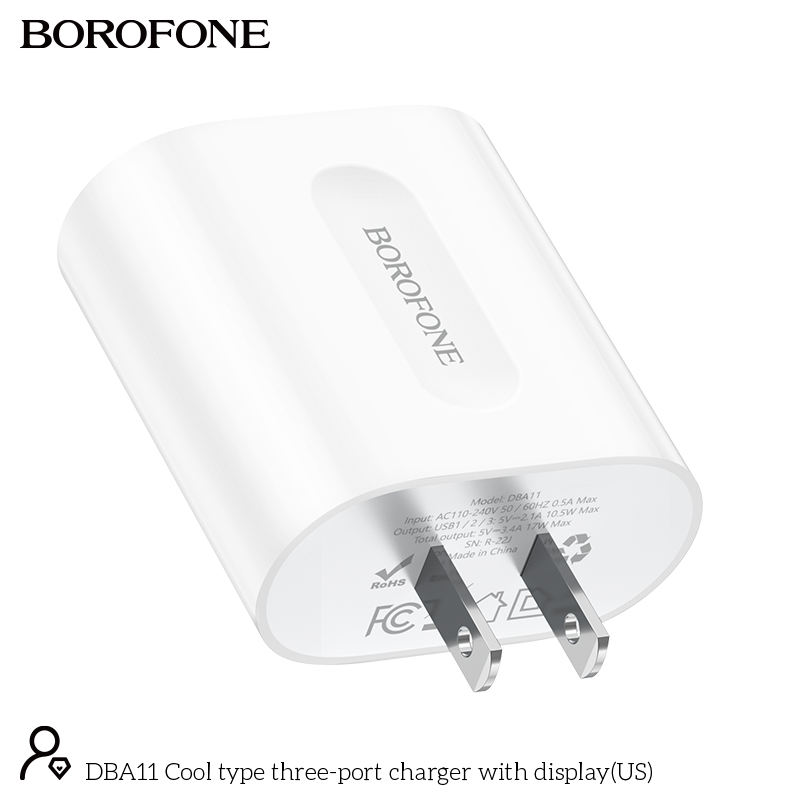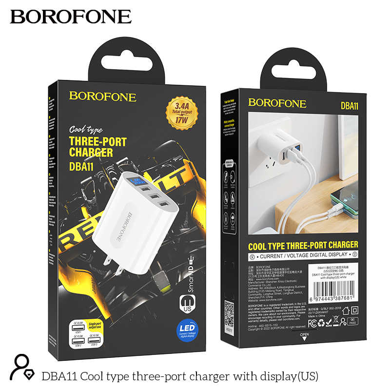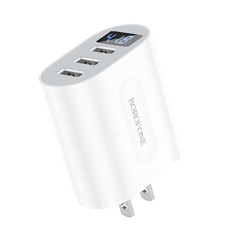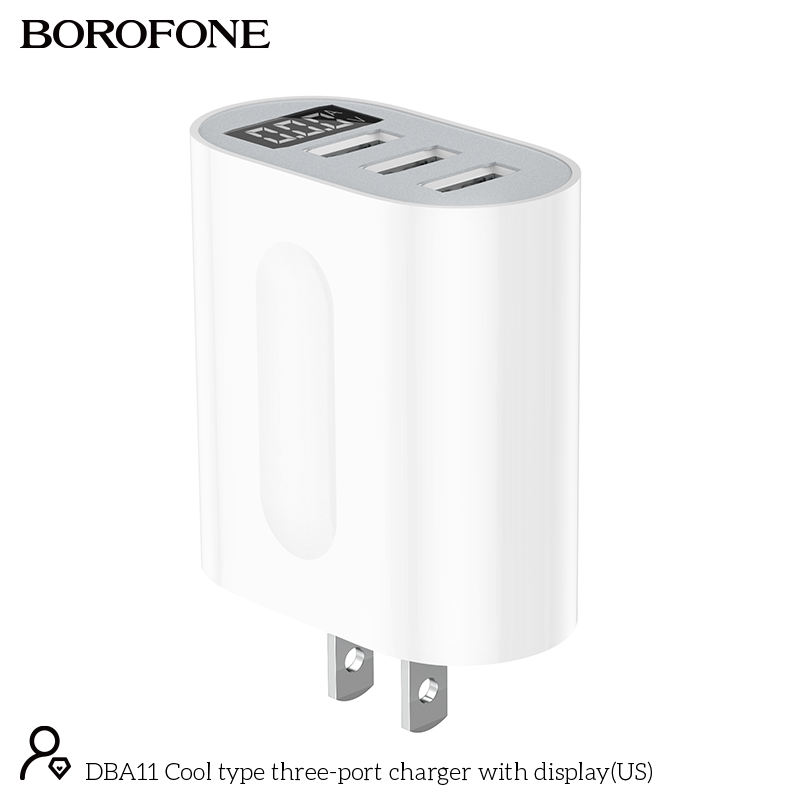 Borofone OEM DBA11สหรัฐปลั๊กแรงดันไฟฟ้าจอแสดงผลดิจิตอลปัจจุบันสามพอร์ตชาร์จผนัง