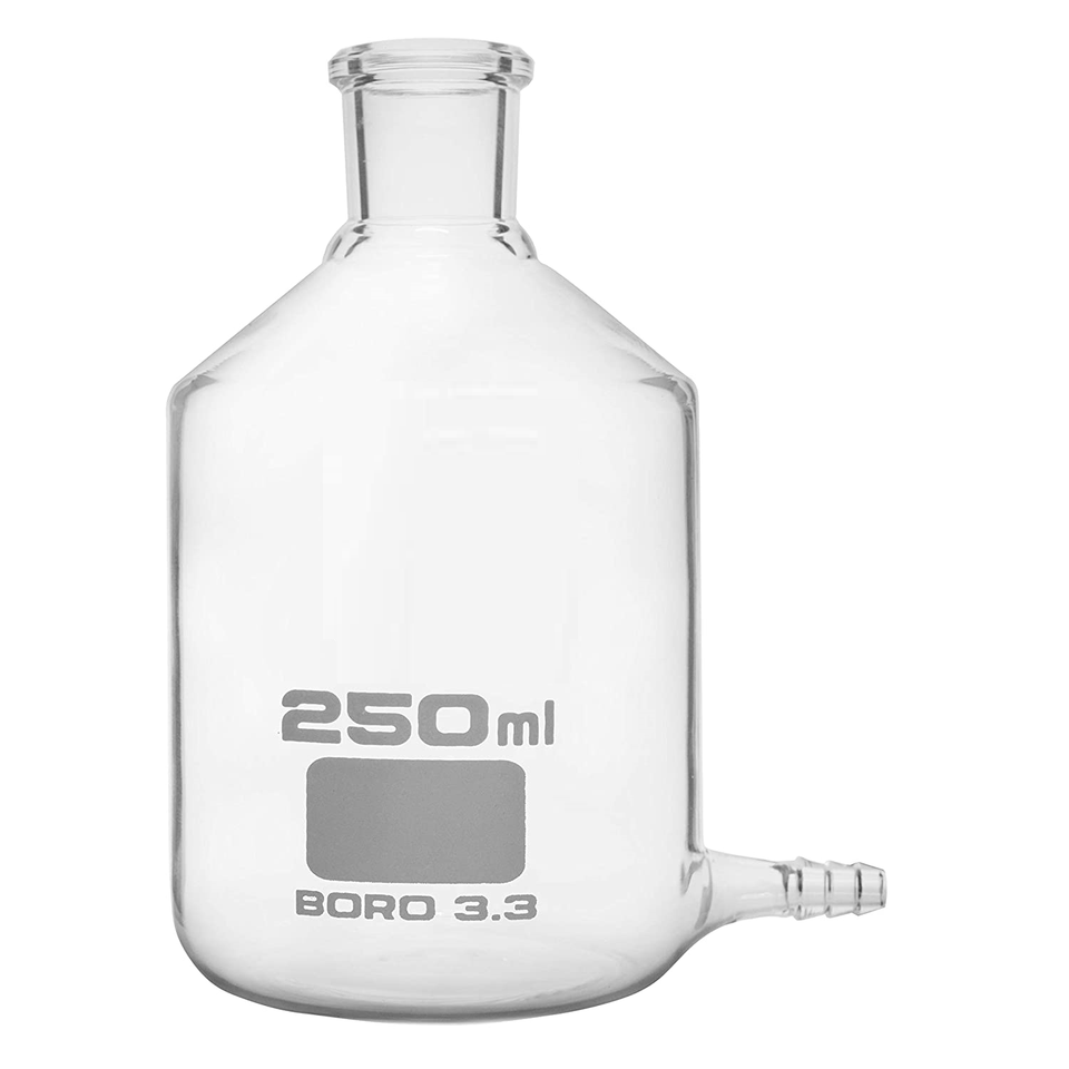ขวดดูดแก้วบอโรซิลิเกตพร้อมฝาปิด/จุกและท่อระบาย ฝาแก้วใสสำหรับห้องปฏิบัติการวิจัย มีจำหน่ายในราคาที่เหมาะสม