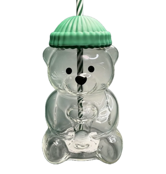 แก้วน้ำเย็นทรงหมี โบโรซิลิเกต ทนความร้อน พร้อมฝาและหลอดดูด เหมาะสำหรับร้านเครื่องดื่มและใช้ในบ้าน สำหรับเทศกาลคริสต์มาส