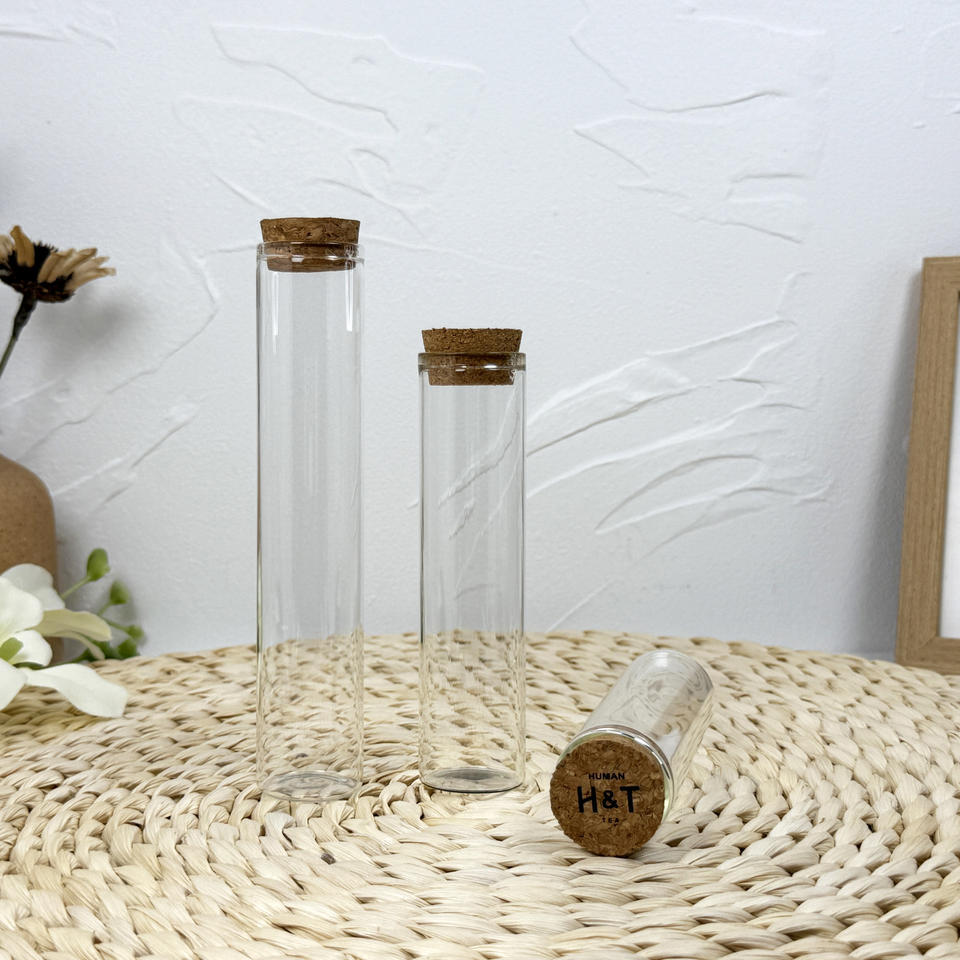 หลอดทดลองแก้วใสขนาดเล็กทำจากแก้วบอโรซิลิเกต พร้อมจุกไม้ก๊อกสำหรับใส่ข้อความในขวดลอยน้ำ