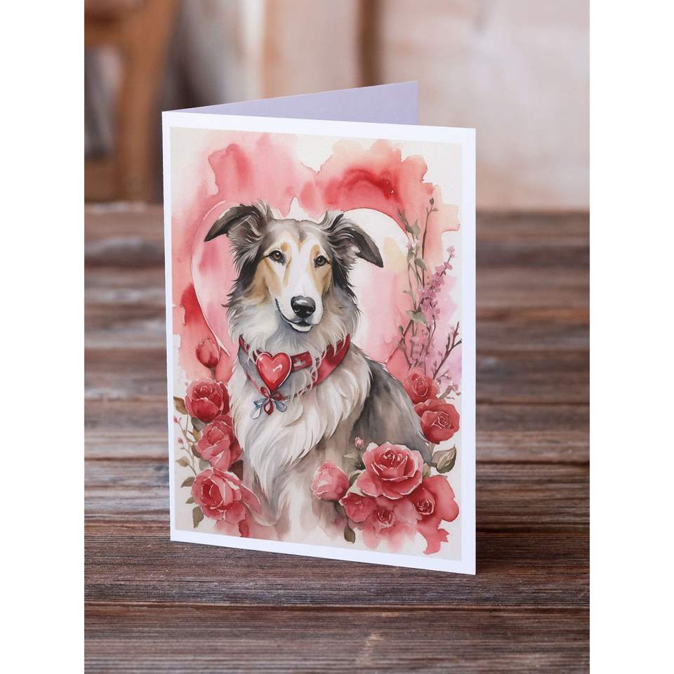 Borzoi การ์ดอวยพรวาเลนไทน์ขนาด5x7 A7, การ์ดเปล่า8ใบพร้อมซองจดหมาย