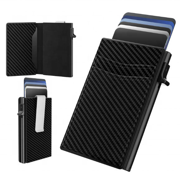 Boshiho กระเป๋าสตางค์ป๊อปอัพแบบสั่งทำสำหรับผู้หญิงและผู้ชาย, กระเป๋าสตางค์แบบมีคลิปหนีบธนบัตรทำจากคาร์บอนไฟเบอร์ทำจากหนัง PU