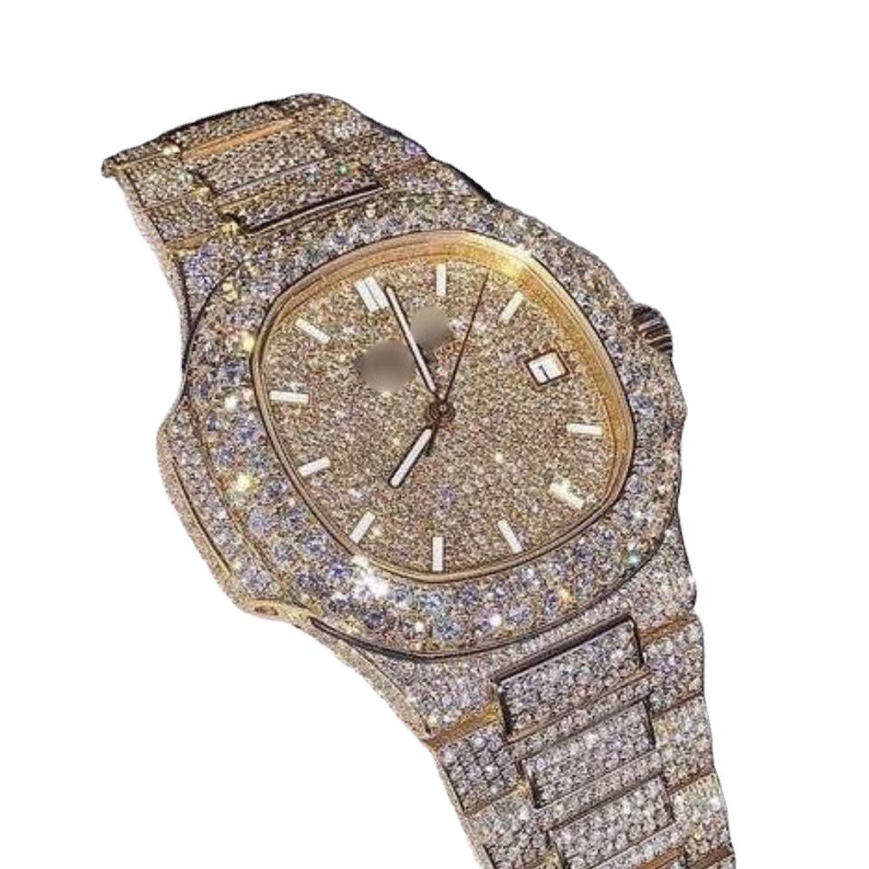 Boss Collection Fully Iced Out Automatic Moissanite Watch Bust Down Hip Hop Big Dial Custom Stainless Steel Diamond