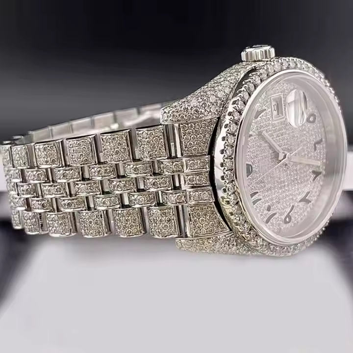 นาฬิกาข้อมือบอส ดริป ควอตซ์ มอยส์ซาไนต์ เพชร สำหรับผู้ชาย ขอบหน้าปัดประดับเพชรหนักแน่น สไตล์ฮิปฮอป หรูหรา โดดเด่น