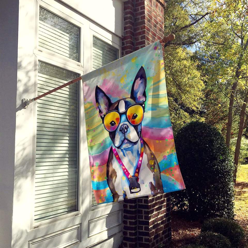 ธงขนาดใหญ่สำหรับตกแต่งสนามแบบบอสตันเทอร์เรียร์ฮิปปี้ธงโพลีเอสเตอร์หลากสีแขวนผนังผนังประดับเสาระเบียง