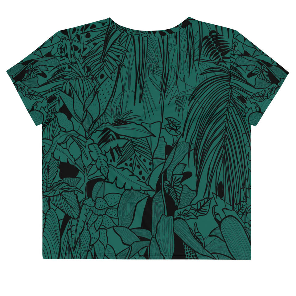 Botanical Black Women's Crop Top T-Shirt Elegant Blouses & Shirts