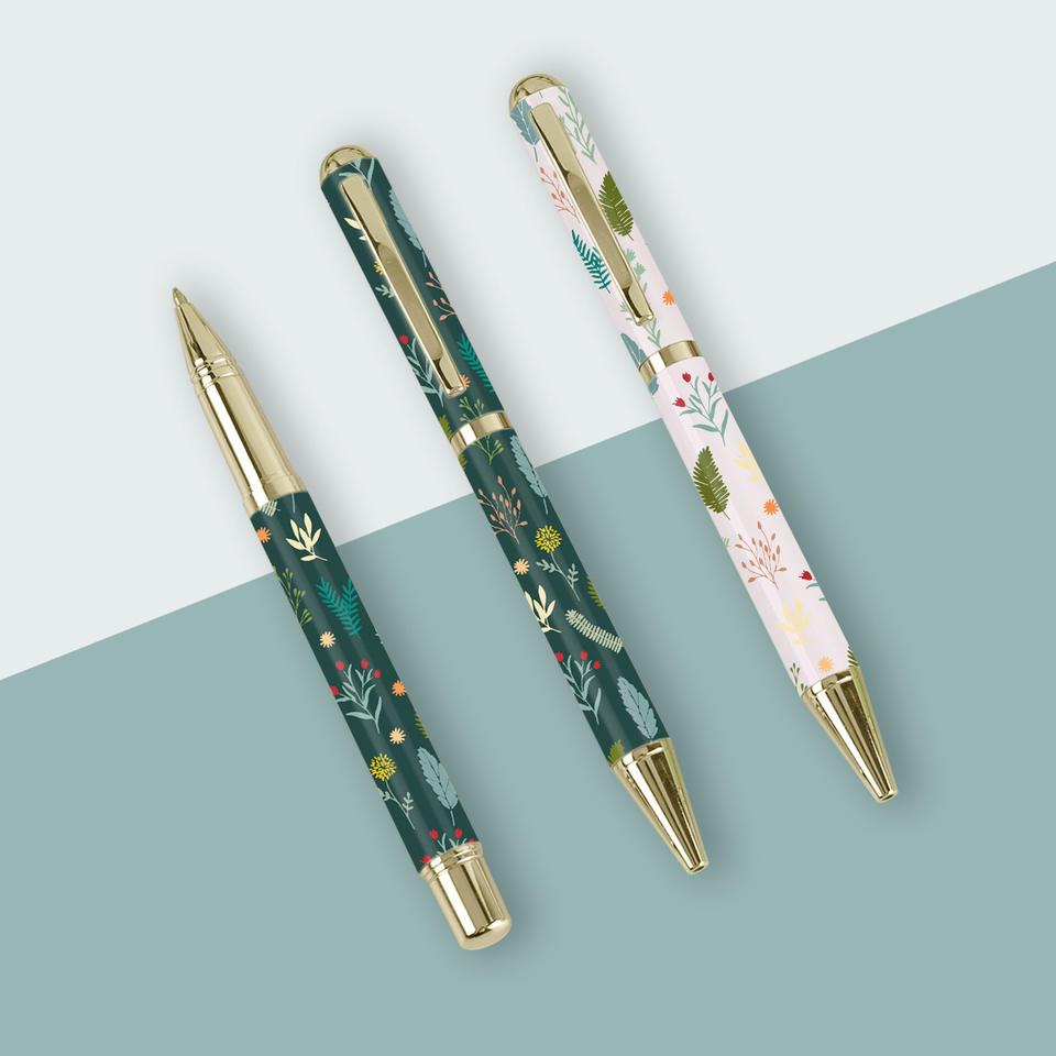 ปากกาลูกลื่นโลหะลายพิมพ์พฤกษศาสตร์ แบบรีดร้อน พร้อมโลโก้สั่งทำพิเศษ อเนกประสงค์ ของขวัญสำนักงานสุดหรูสำหรับโปรโมชั่น