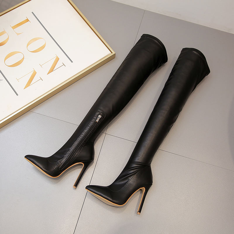 รองเท้าบูทผู้หญิงไซส์ใหญ่ ทรงสูงเหนือเข่า หนังแก้ว แฟชั่นทันสมัย เซ็กซี่
