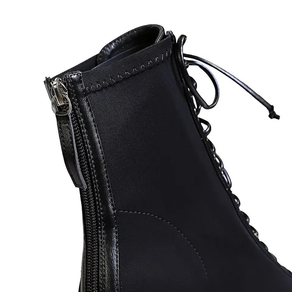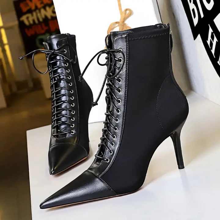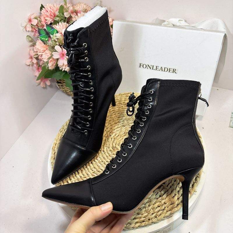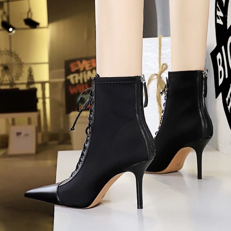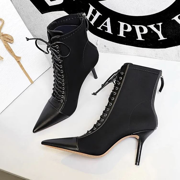 รองเท้าบูทผู้หญิงรุ่นใหม่ รองเท้าบูทส้นเข็มแบบมีสายรัดสูง 8 ซม. สำหรับผู้หญิง ฤดูหนาว