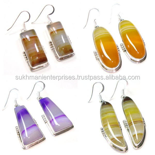 Botswana Agate Earrings Wholesale Lot 925 Sterling Silver Jewelry