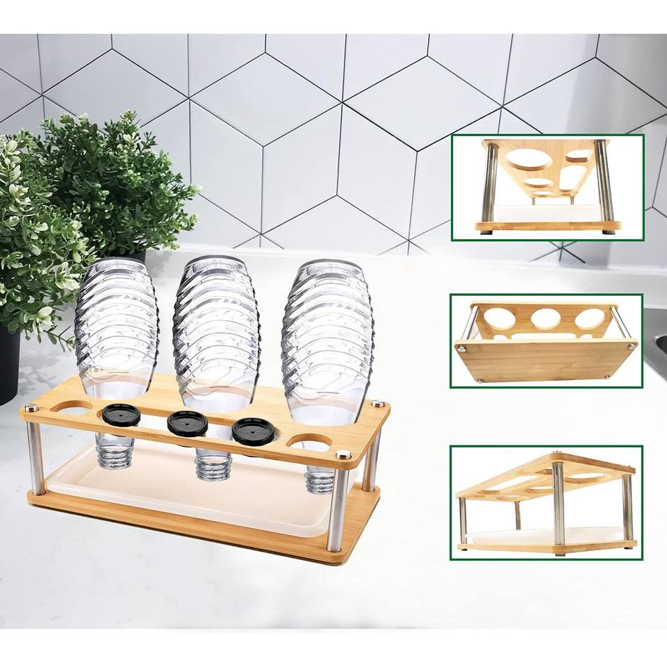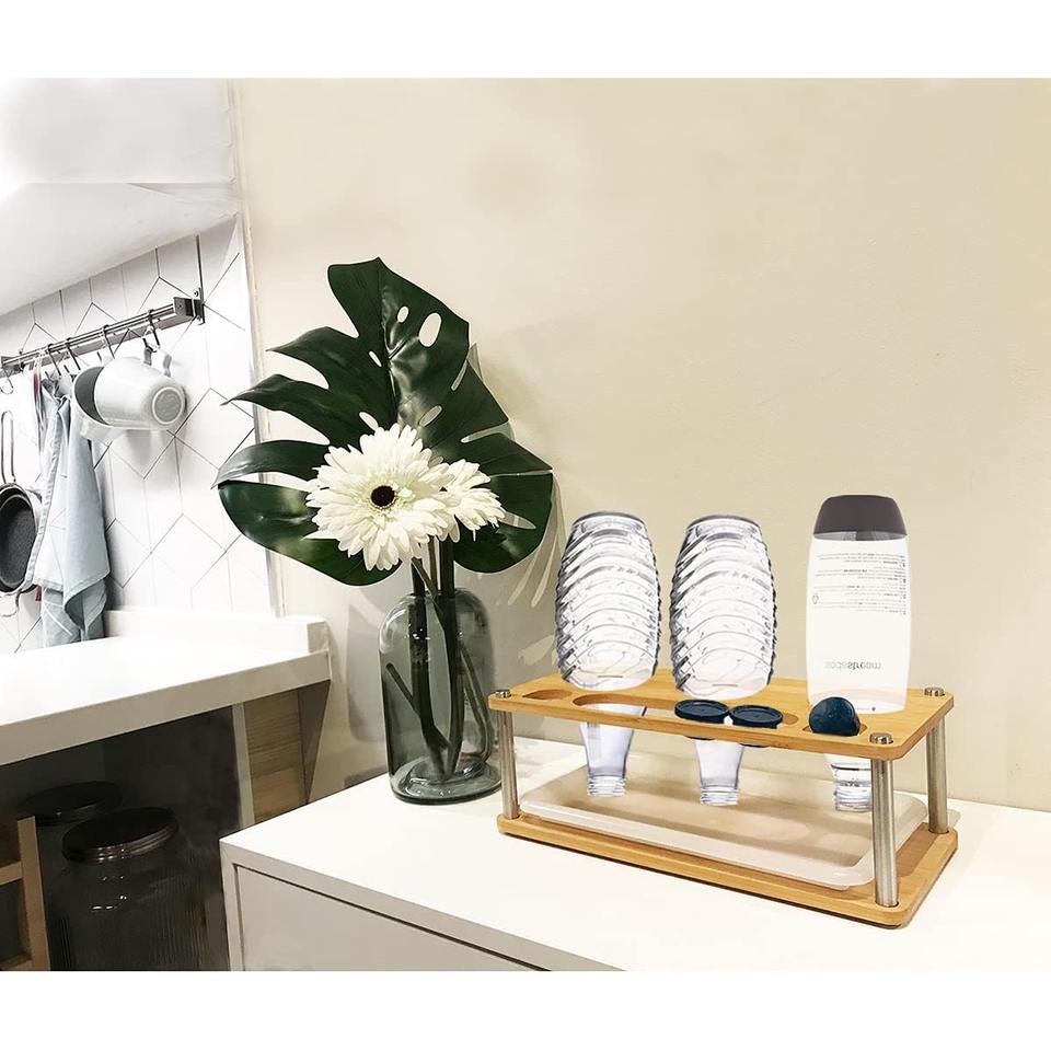 ที่วางขวดทำจากไม้ไผ่สำหรับทำขวดแบบแห้งสำหรับทำจากคริสตัล Sodastream