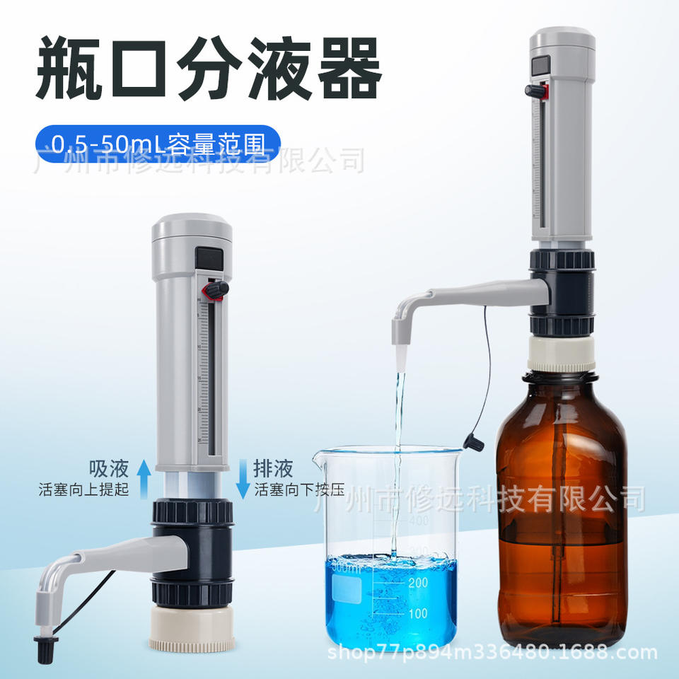 เครื่องจ่ายสารแบบปากขวดปรับได้ 2.5-50 มล. สำหรับใช้ในห้องปฏิบัติการ ปิเปตพลาสติก