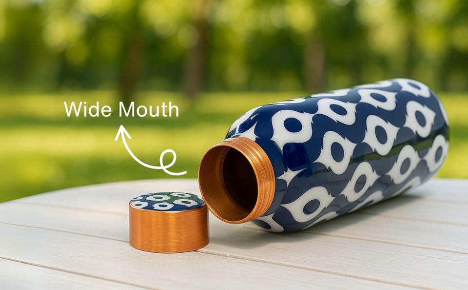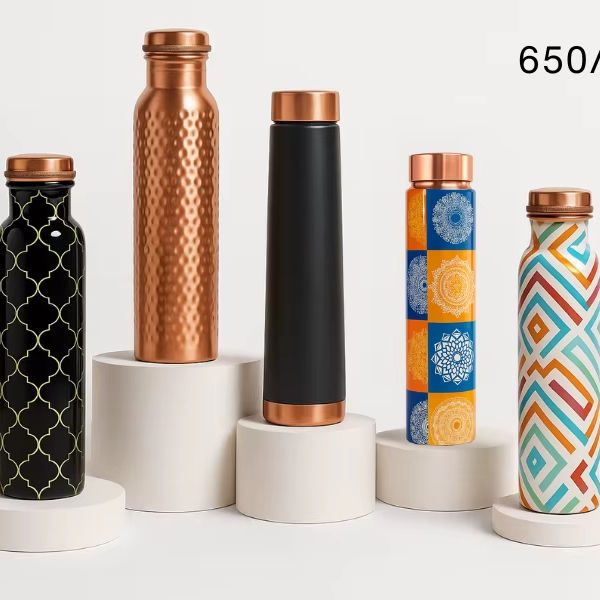 ขวดน้ำทองแดงลายแมนดาลา ขวดน้ำทองแดงแท้ 1 ลิตร ลายแมนดาลา ขวดทองแดงดีไซน์เนอร์ งานศิลปะมีน่า ขวดทองแดงอายุรเวท
