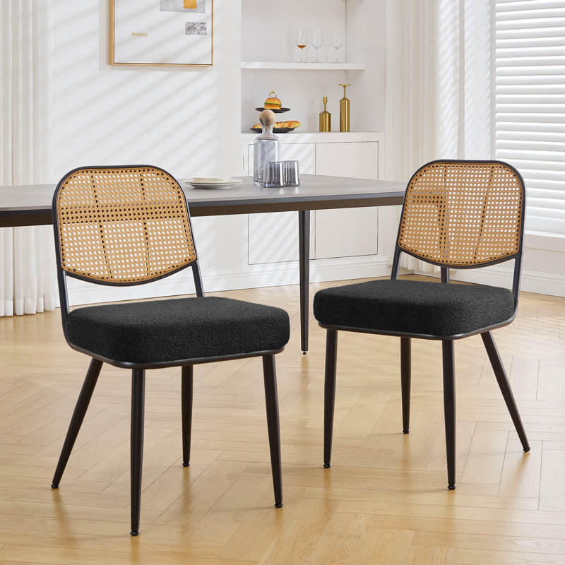 เก้าอี้ผ้าหวายสำหรับรับประทานอาหารด้านหลังเป็นโครงโลหะบ้านไร่ชุด2ชิ้นสำหรับบ้านและร้านอาหาร