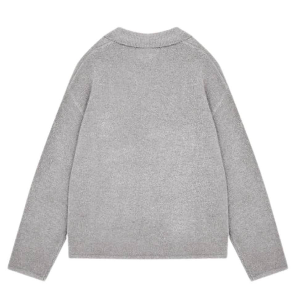 เสื้อโปโลแขนยาวผ้าถักบูเคลสีเทาผสมมาร์ล สวมใส่สบายและมีสไตล์ เสื้อโปโลแขนยาวผ้าถักบูเคลสีเทาผสมมาร์ล เหมาะสำหรับใส่ลำลองและสบายๆ