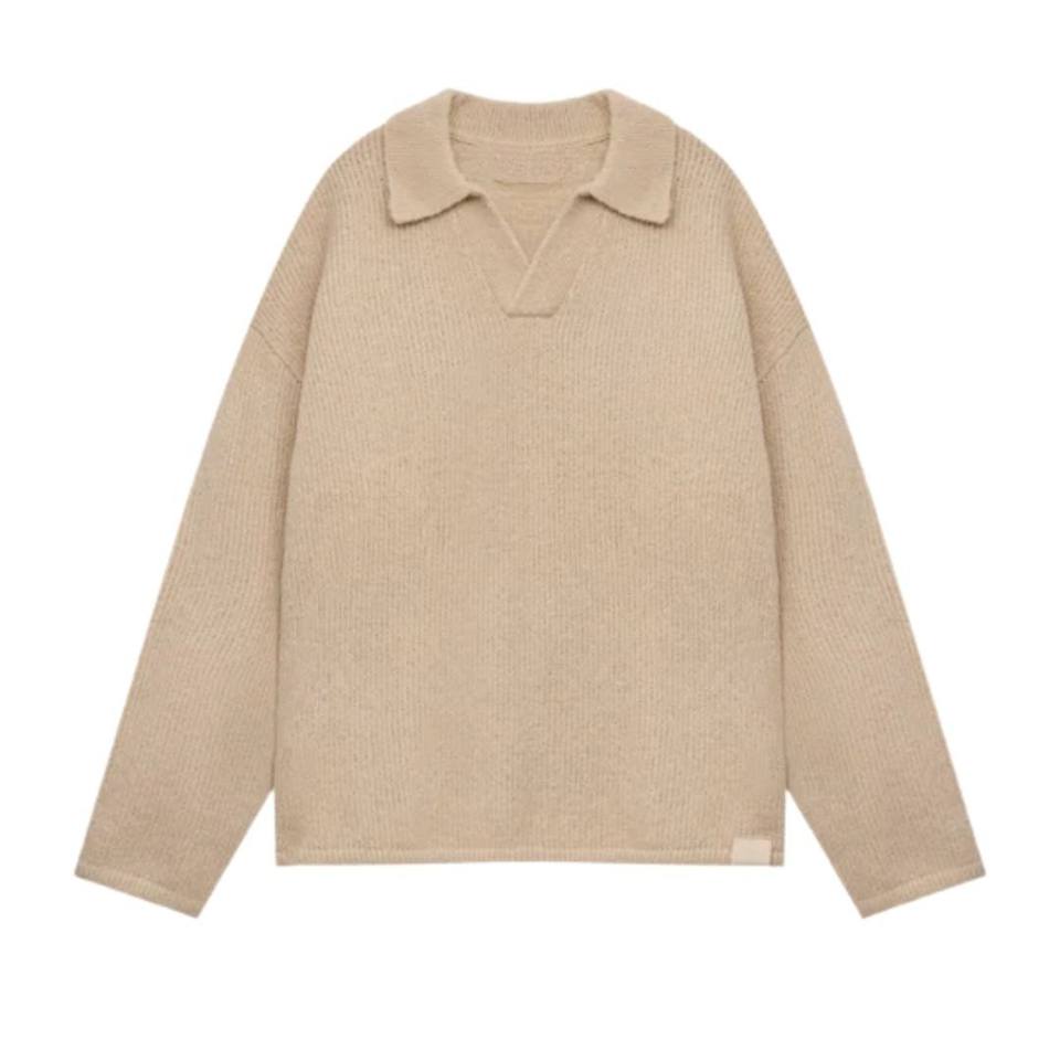 เสื้อโปโลแขนยาวผ้าบูเคลนุ่มสบาย สีสโตน เหมาะสำหรับใส่ลำลองและสวมใส่สบาย