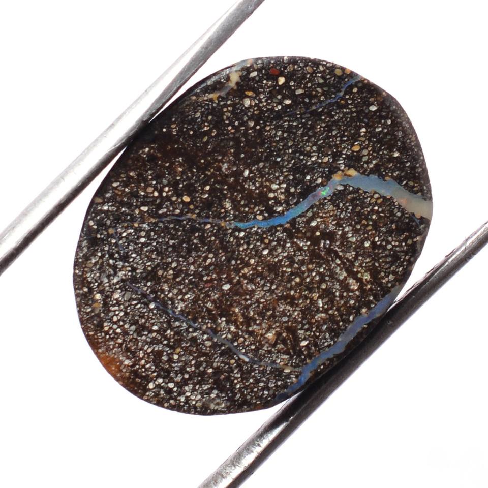 โอปอลโบลเดอร์ รูปไข่ 12x15.5 มม. แบบเรียบ โอปอลไฟออสเตรเลียแท้หายาก พลอยอัญมณีทรงแบนสำหรับทำเครื่องประดับ