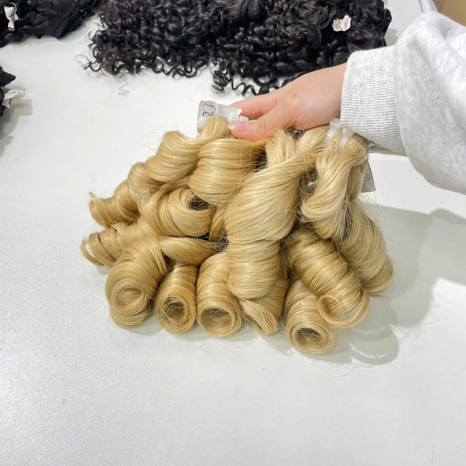 ผมต่อสีบลอนด์แบบเด้งดึ๋ง ผมเวอร์จินเวียดนามสำหรับผู้หญิง ราคาส่งจากโรงงาน คุณภาพสูงระดับพรีเมียม