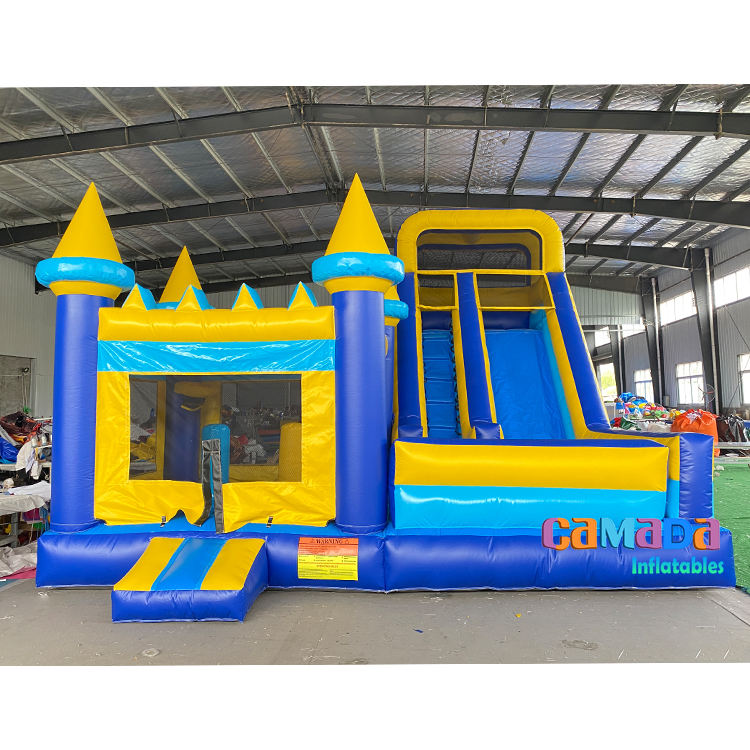 ปราสาทเด้งด้วยสไลด์น้ำเป่าลมสีฟ้าบ้านเด้งเป่าลมเชิงพาณิชย์สำหรับงานปาร์ตี้เช่าปราสาทกระโดดคอมโบ