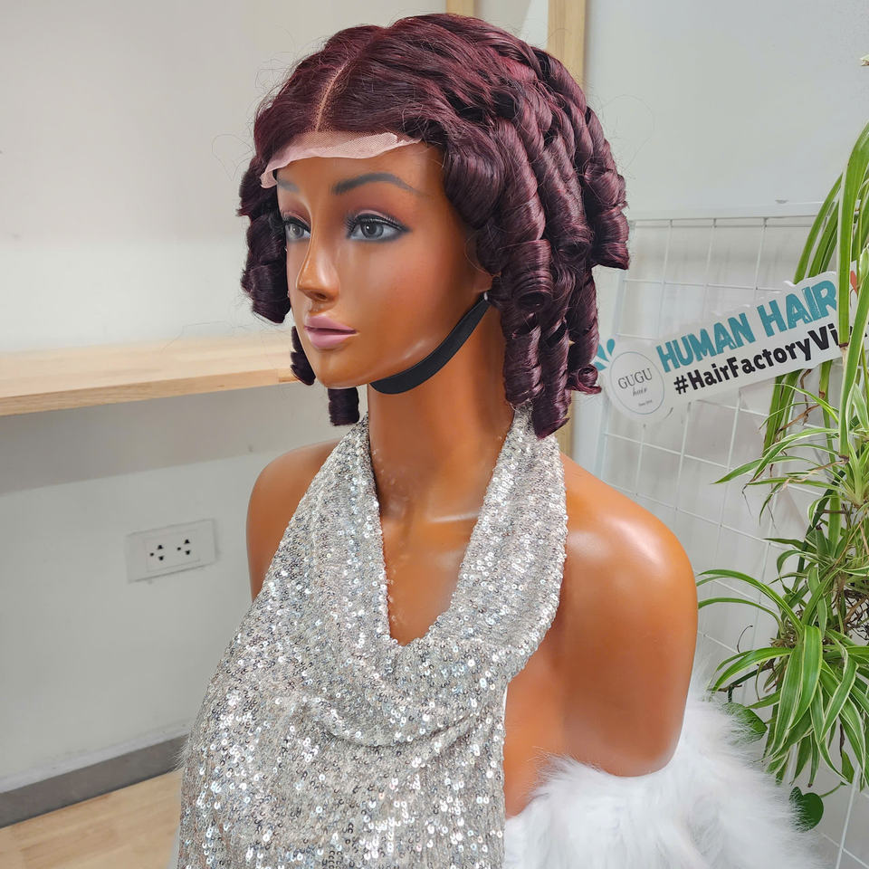 วิกผมแท้แบบเวอร์จิ้น ทรงลอนเด้ง ปรับแต่งสีได้ แบบดับเบิ้ลดรอน พร้อมซุปเปอร์ฟรอนทัลคลอสเชอร์ ลูกไม้โปร่งใส วิกผมเวียดนาม