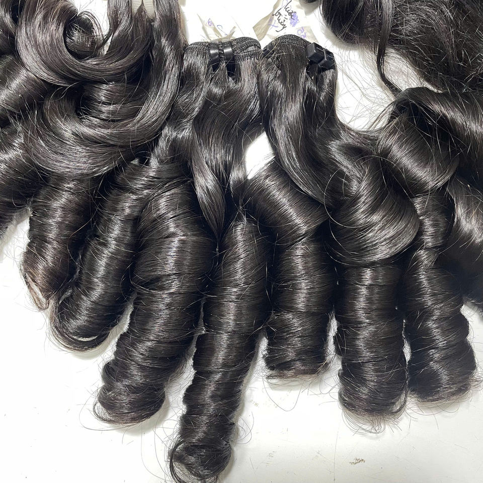ผมต่อแบบลอนเด้ง สีดำธรรมชาติ คุณภาพสูง ผมแท้เวียดนาม ซุปเปอร์ดับเบิ้ลดรอน ฐานลูกไม้แบบใส