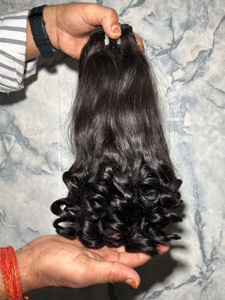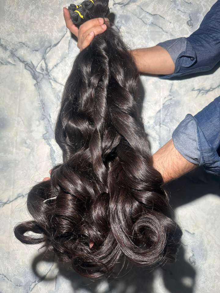 Bouncy Wave Virgin Indian Remy Hair Bundles Raw Temple Human Hair Extension Soft Wavy Texture Unprocessed: not a permanent model