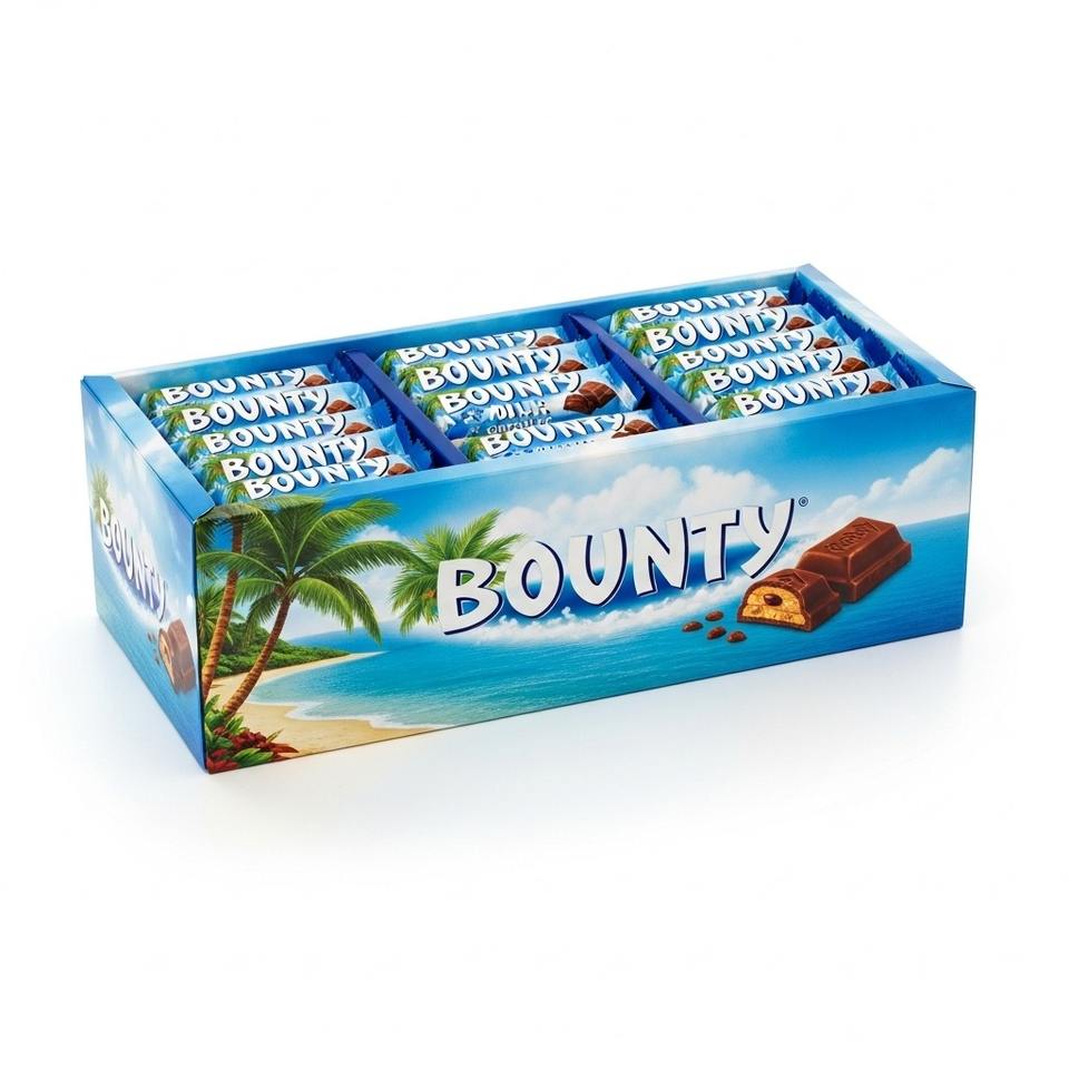 บาร์ช็อคโกแลต Bounty ไส้มะพร้าวนุ่มคู่และช็อกโกแลตนมครีมแพ็คสำหรับคำสั่งซื้อขายส่งขนาดใหญ่