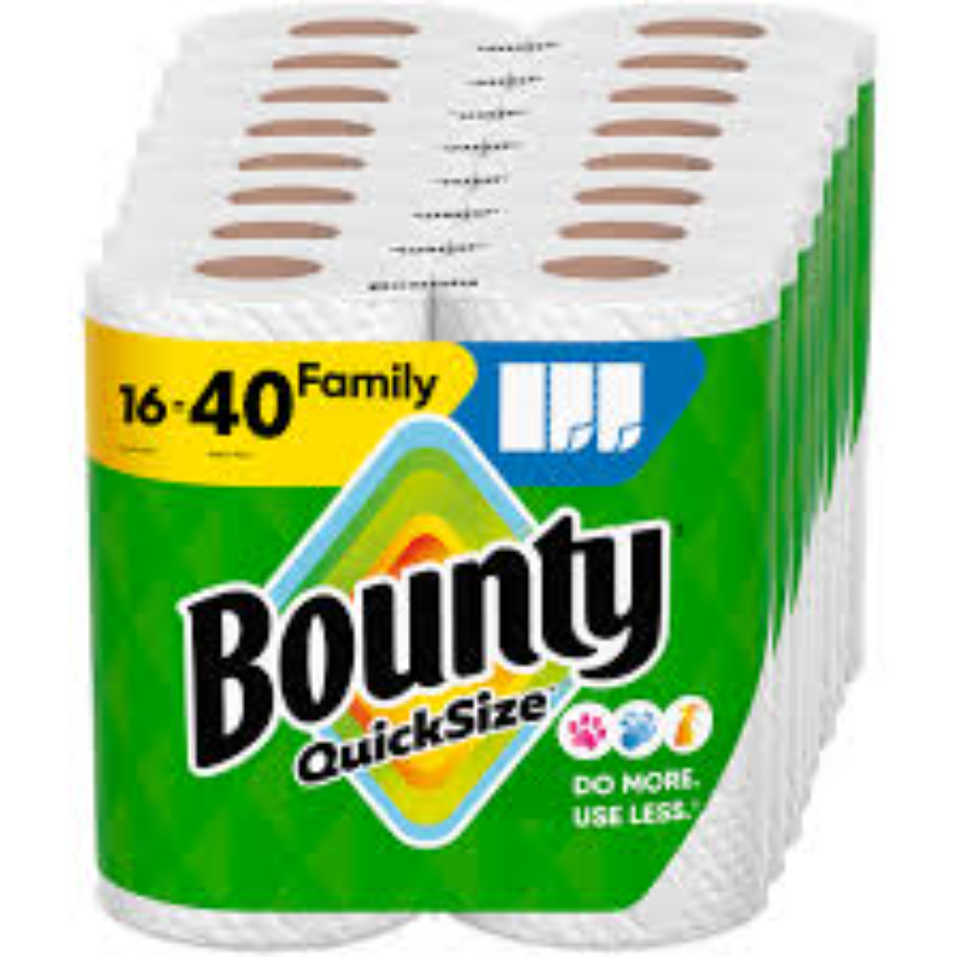 กระดาษเช็ดมือ Bounty Quick-Size 2 ชั้น ผลิตจากเยื่อไม้บริสุทธิ์ แบบพับเดี่ยว สีขาว 12 ม้วนใหญ่สำหรับครอบครัว 3 ม้วน = 36 ม้วน