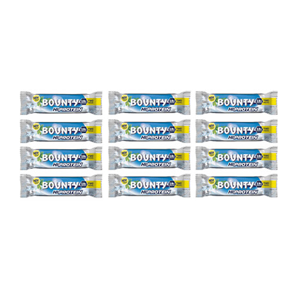 บาร์โปรตีน Bountyy สูตรไฮโปรตีน ผสมคอลลาเจนไฮโดรไลซ์และโปรตีนนม 52 กรัม โปรตีน 35 กรัมต่อ 100 กรัม เพื่อเสริมสร้างการสร้างกล้ามเนื้อ