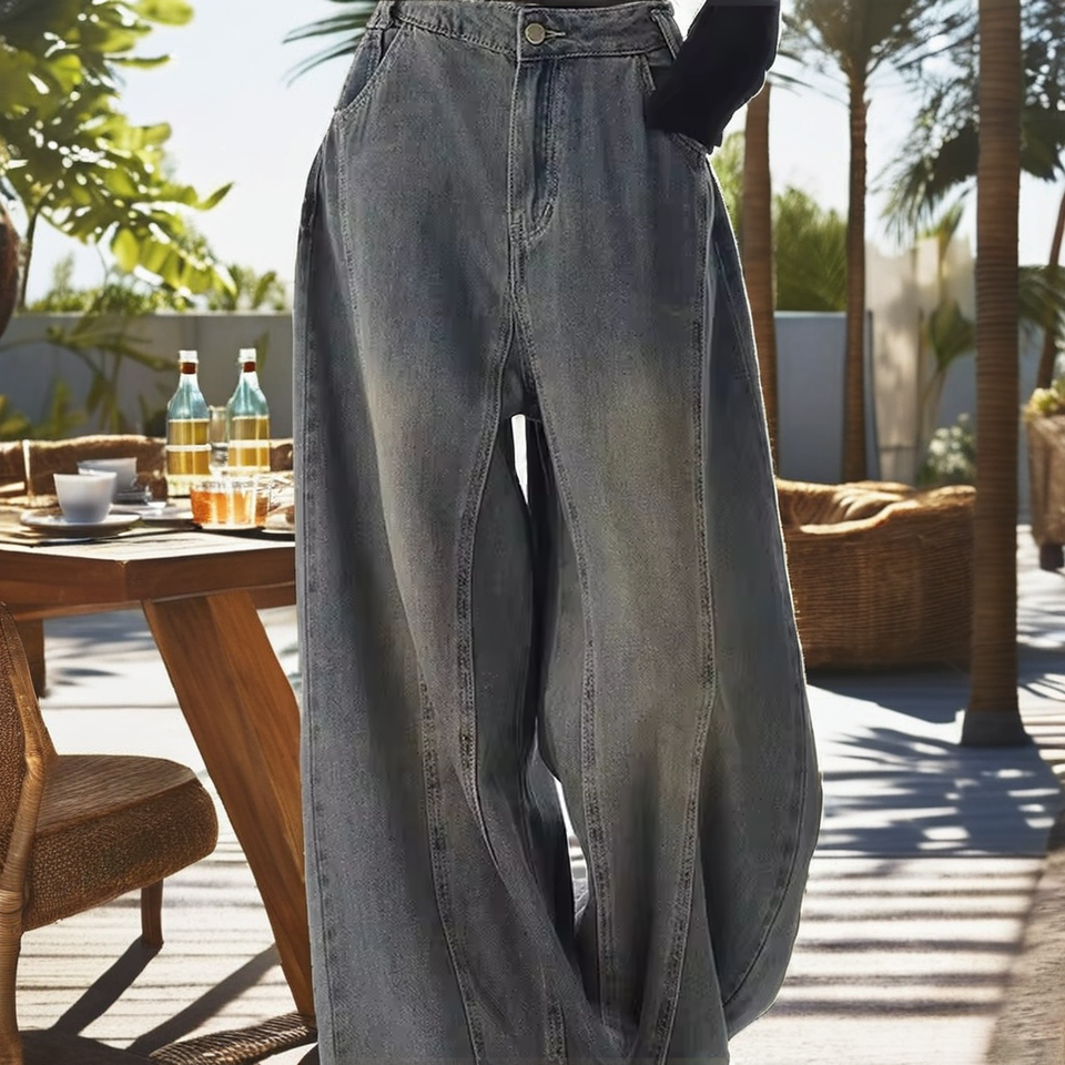 กางเกงยีนส์เอวสูงเอวสูงเอวสูงของผู้หญิงผ้ายีนส์ลำลองสีทึบใหม่สำหรับฤดูใบไม้ร่วงบูติก2024