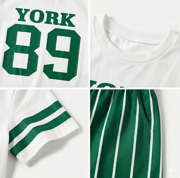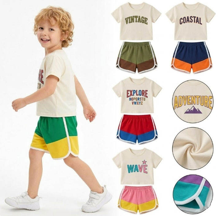 ชุดฤดูร้อนสำหรับเด็กผู้ชาย เสื้อยืดแขนสั้นคอปกสีตัดต่อและกางเกงขาสั้น ชุด 2 ชิ้น ลายการ์ตูนผสมผสาน สำหรับเด็กอายุ 3-6 ปี