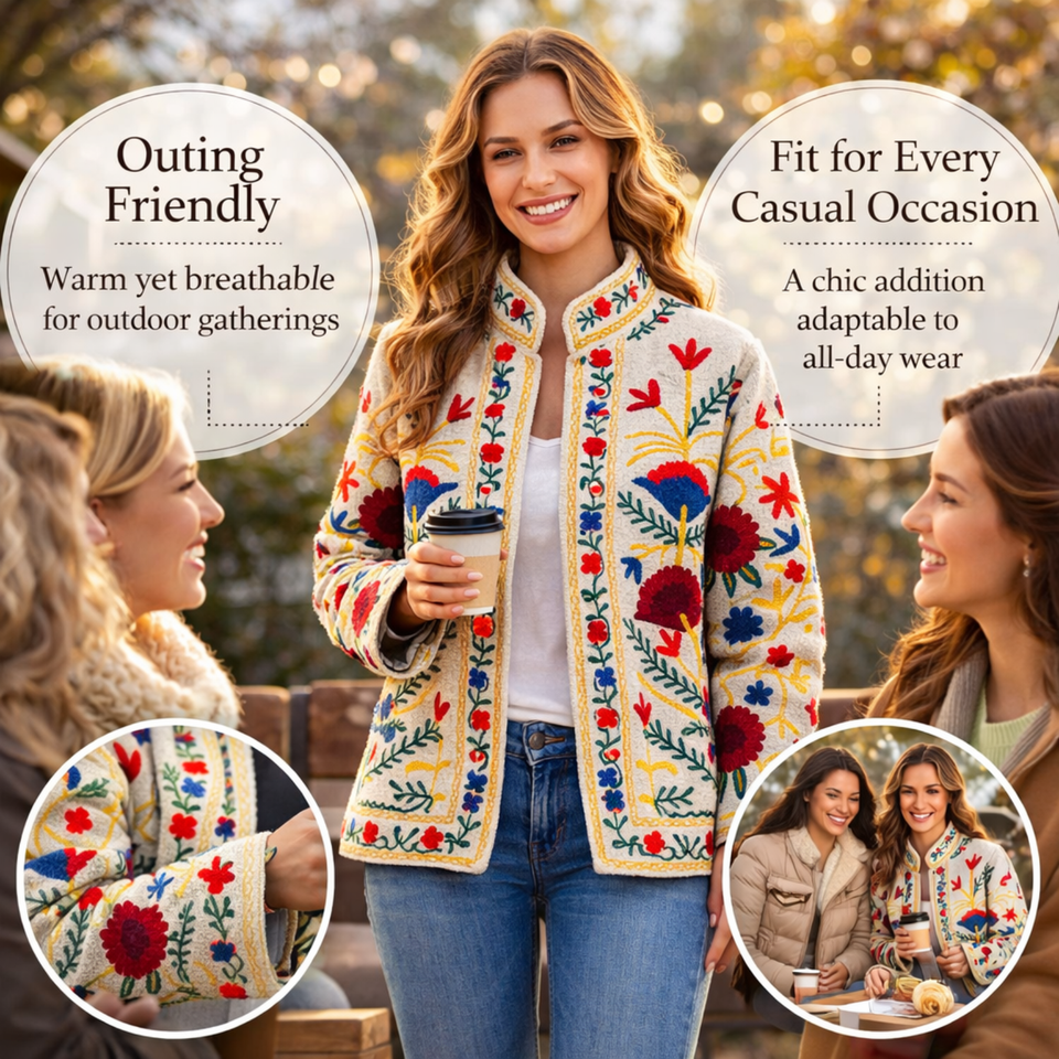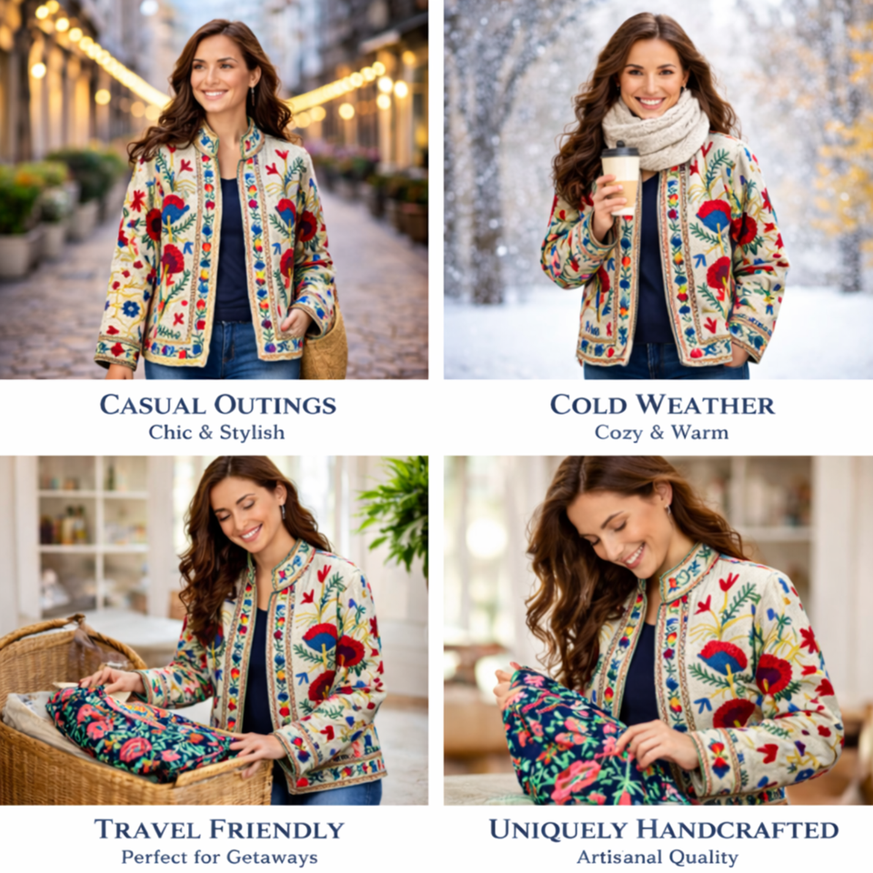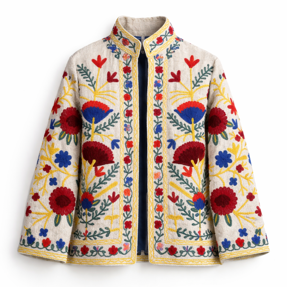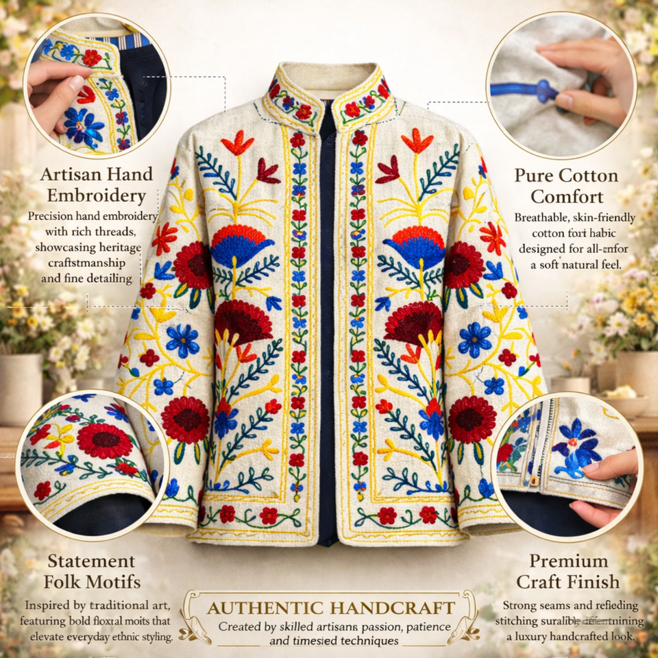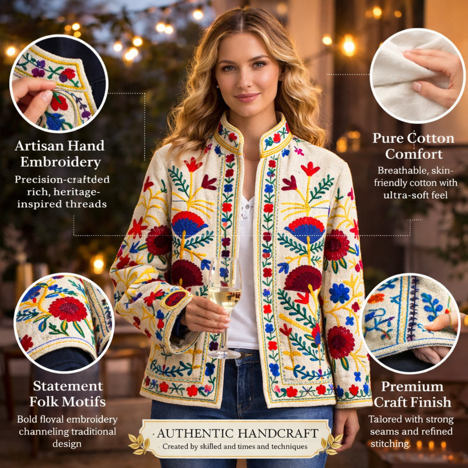 เสื้อแจ็คเก็ตผ้าฝ้ายปักลายคุณภาพบูติก ซับใน TNT คอตั้ง งานแฮนด์เมด เสื้อโค้ทบอมเบอร์สำหรับผู้หญิง