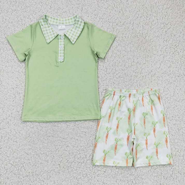 ชุดกระต่ายอีสเตอร์เข้าชุดสำหรับพี่น้อง ลายแครอทสีเขียว เสื้อผ้าสำหรับวันอีสเตอร์