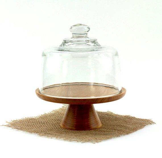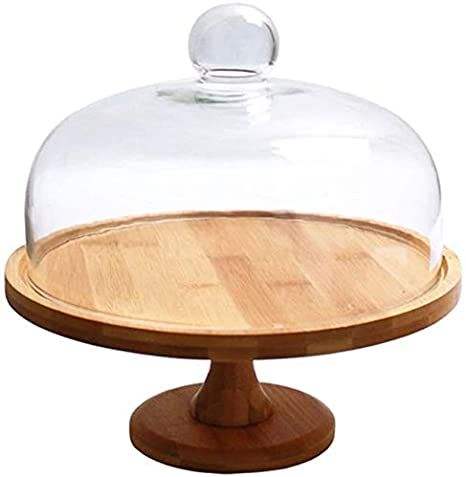 แท่นวางเค้กไม้พร้อมฝาแก้ว