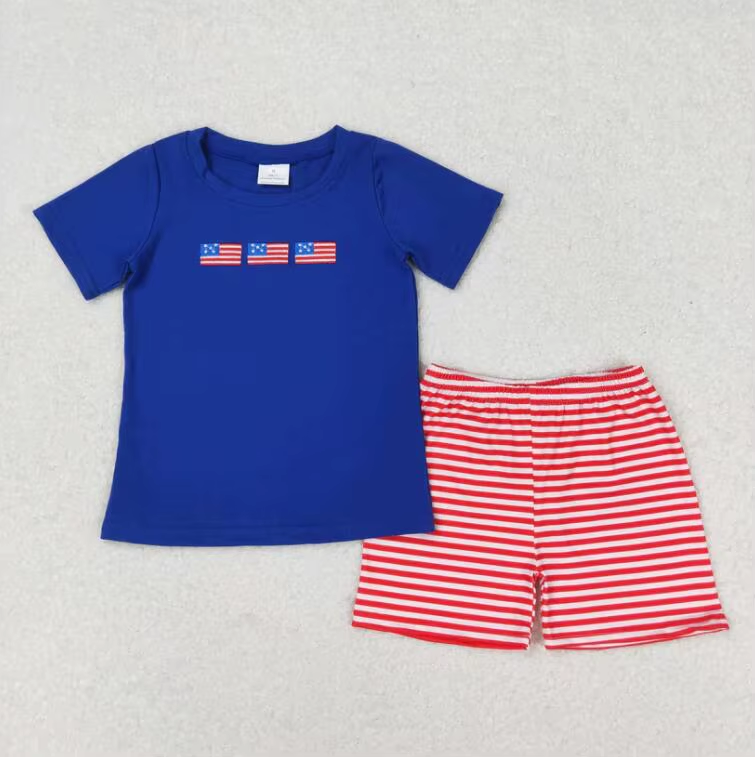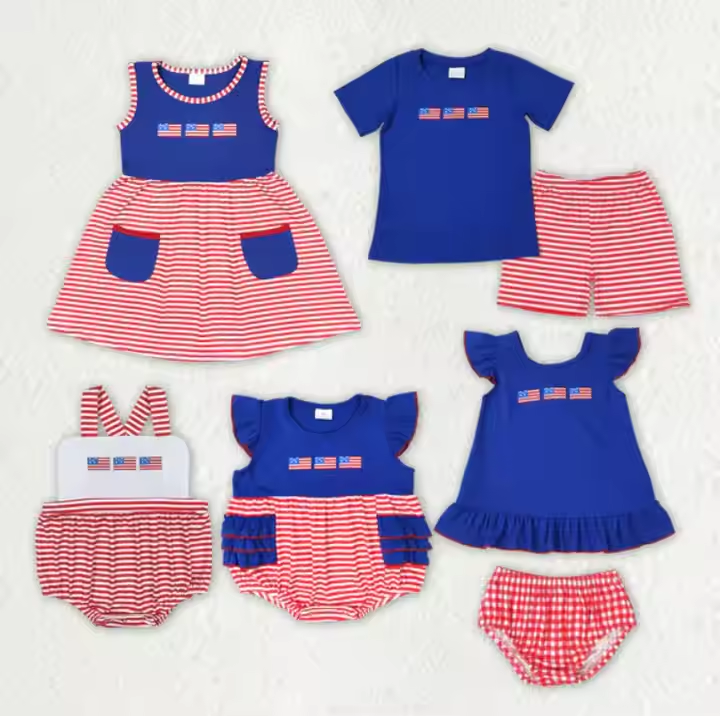 ชุดเสื้อผ้าเด็กเล็กชายหญิง 2 ชิ้น ผ้าฝ้าย พิมพ์ลาย โลโก้สั่งทำ ขายส่ง สำหรับเด็ก วันชาติอเมริกา 4 กรกฎาคม