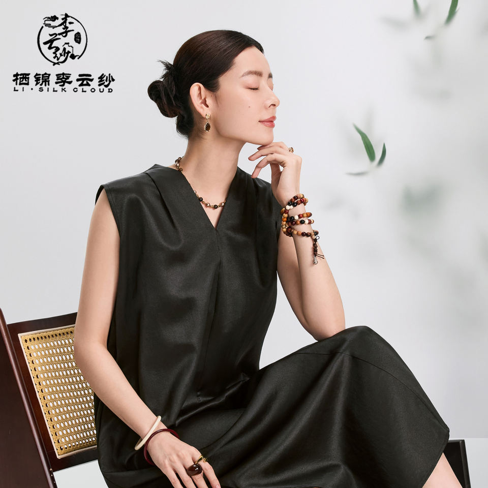 บูติกผ้าไหม100% 2025คอวีแขนกุดกระชับสัดส่วนลายดอกไม้ธรรมชาติเป็นมิตรต่อสิ่งแวดล้อมฤดูร้อน