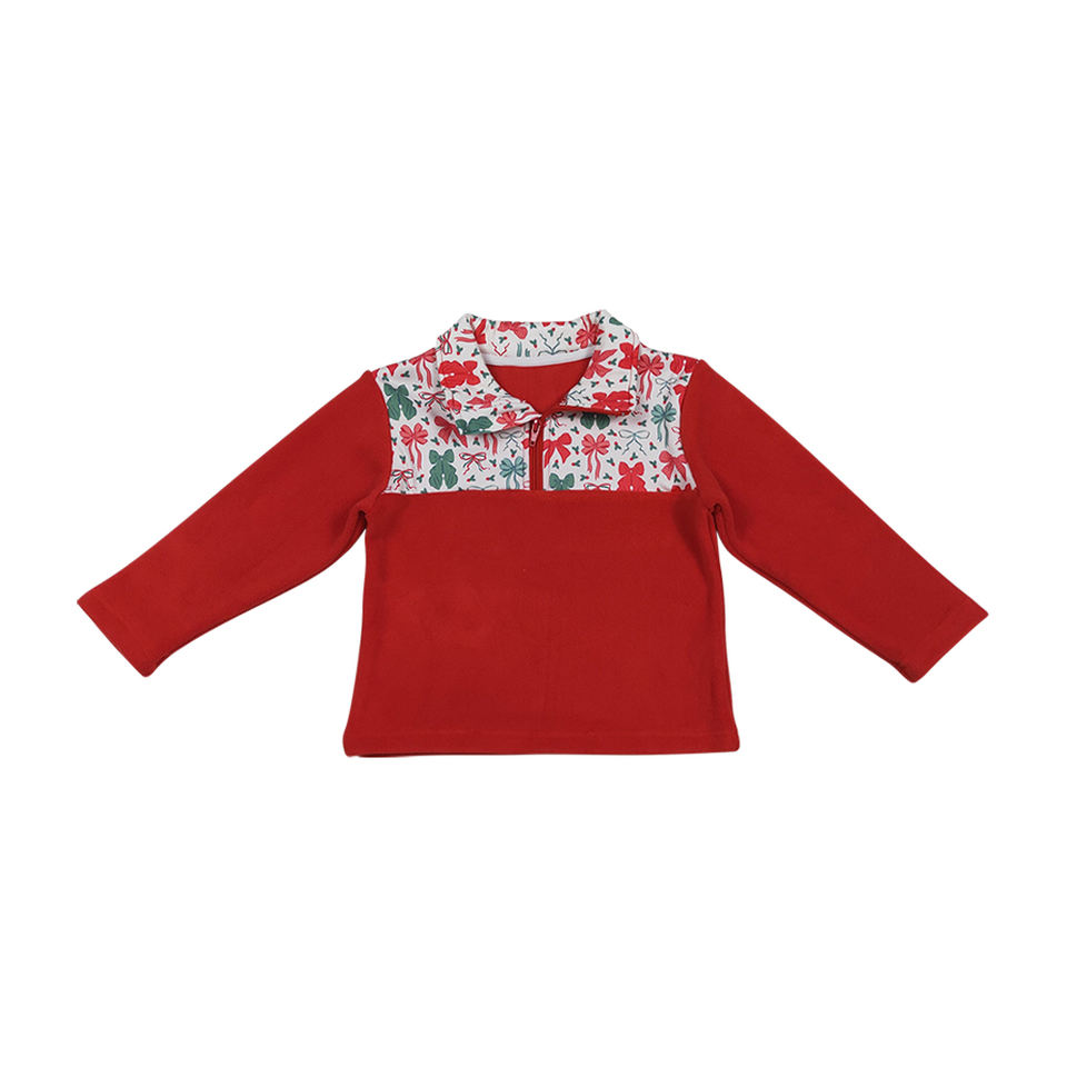 เสื้อผ้าเด็กผู้หญิงแบบสวมหัวมีซิป ลายโบว์สีเขียวแดงคริสต์มาส ผ้าเชอร์ปา สินค้าใหม่ขายส่งราคาถูก คุณภาพสูง ขายดี