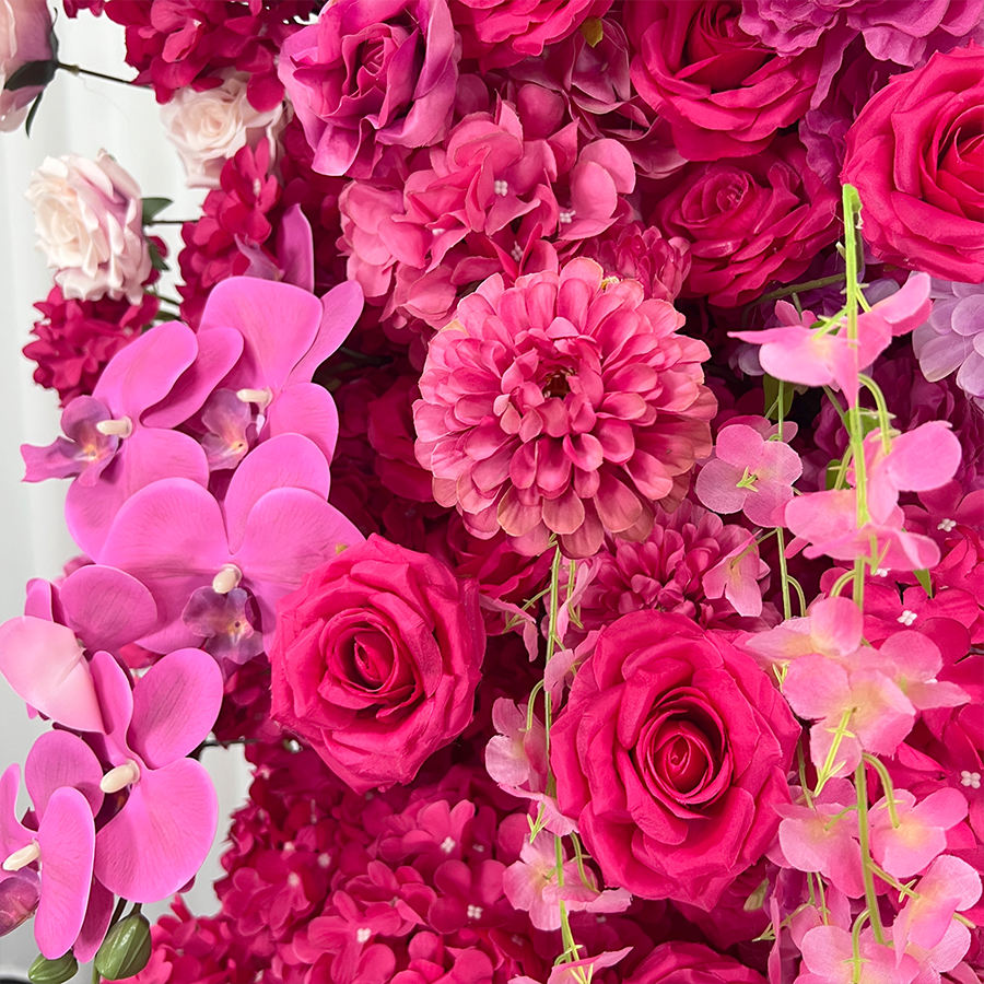 ซุ้มดอกไม้สีชมพูดอกไม้ขนาดงานแต่งงานดอกไม้สมจริง
