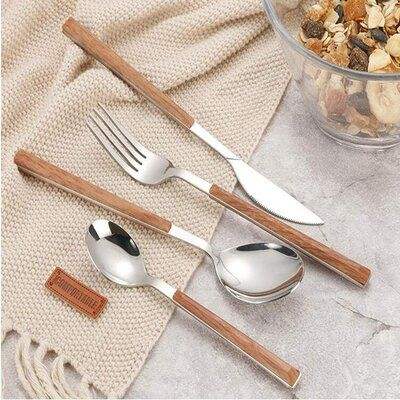 ชุดช้อนส้อมโลหะมาตรฐานโรงแรมบูติกพร้อมด้ามจับไม้ ช่วยเพิ่มประสบการณ์แขกให้กับมื้ออาหารที่น่าจดจำ