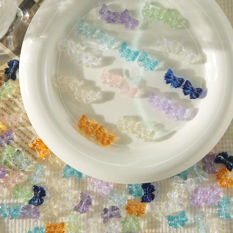 ลูกปัดแก้วรูปโบว์ลูกปัดแก้วหลากสีแบบทำมือลูกปัดแก้วรูปโบว์ใสสำหรับทำเครื่องประดับ
